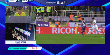第88分钟,拉涅利禁区内倒地判罚点球,VAR回看后取消点球判罚