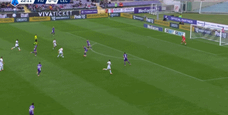 第23分钟,莫伦特传中,贝里沙后点端射破门,莱切1-0佛罗伦萨